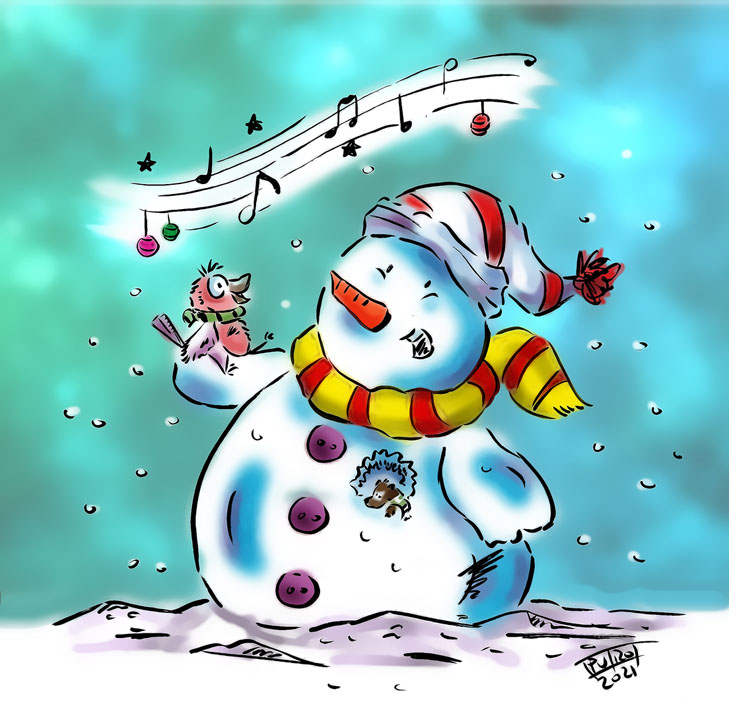 A new #illustration for #artchallenge #Holidraw21 on IG "SING" prompt . Let's #Xmas feeling sing🎄 #ChildrensBooks #kidliart #snowman