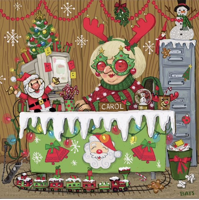 Know that the triple #vaxxed “Yuletide Carol” is the only one working from the #office. #illustration #characterdesign #kidslitart #kidslit