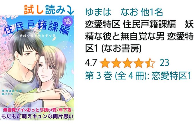 『恋愛特区 住民戸籍課編』 amzn.to/37tkyuS こちらも評価増えました💞 感謝🙏😇 偶然知り合った二人が互いに意識するように。少しずつ距離が縮まって徐々に心を通わせていく 無自覚ゲイ×おっとり受のじれじれ両片想い✨ 萌えキュン恋愛模様🥰 #kindle #BL小説 #創作BL #KindleUnlimited