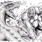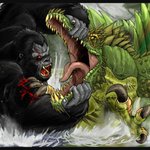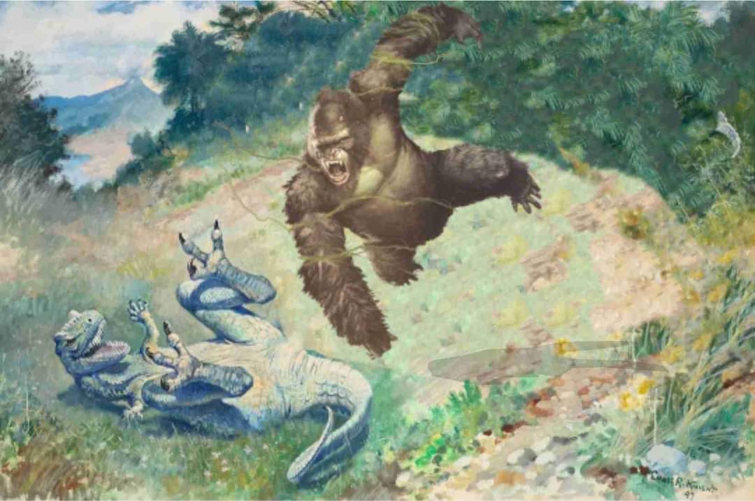#KingKong is 90 today!! Have a peek at some OLD art I made of the King of Skull Island! I actually gave the Rhedosaurus one to Ray Harryhausen when he visited Austin back in 2006! #KingKong90