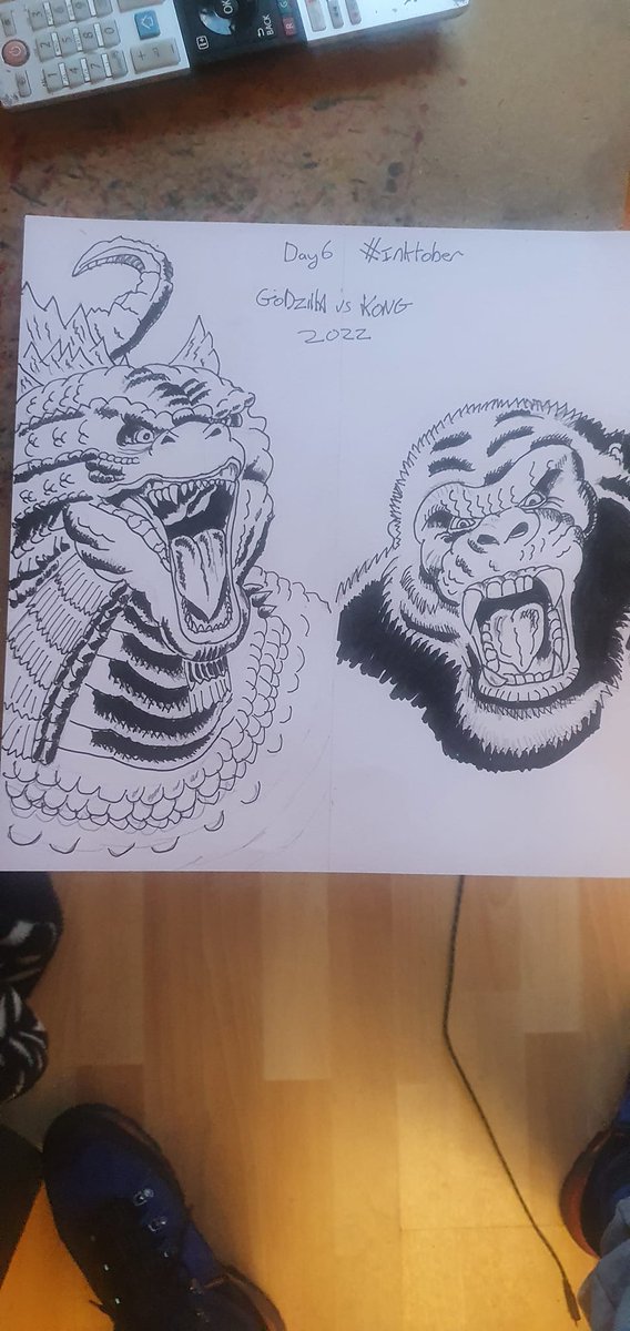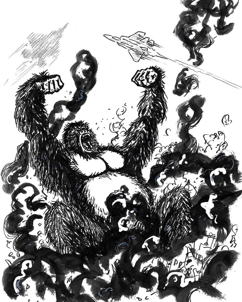 KONG 2022. Ink on Paper. 8x10 inch. Originally Drawing (Framed) Available at @giantrobotstore Kaiju Show 2022 Opening Saturday October 15th. Artwork available online at 11am. Opening Reception 1pm to 3pm. #grkaijushow #ericnyquist #kingkong #scifi #drawing #inktober