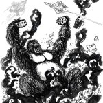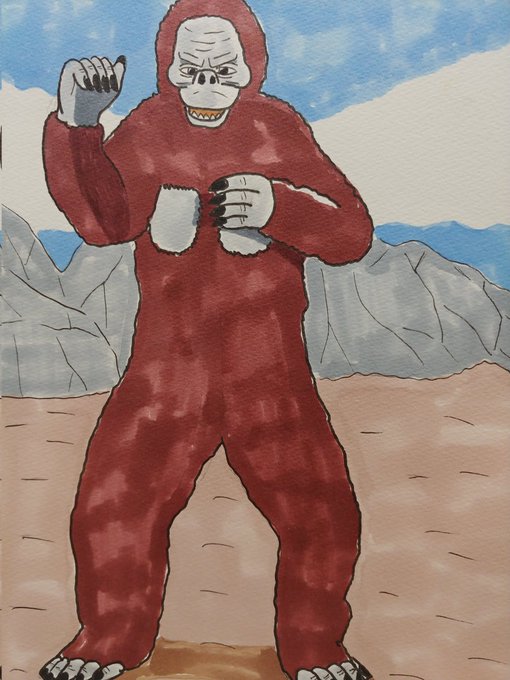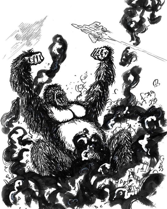 本国アメリカはまだ3月2日ということで…。 昔、年賀状に使ったイラスト🦍 #KingKong90 #KingKong #3月2日はキングコングの誕生日 #キングコング #キングコング聖誕祭 #キングコング生誕90周年 #イラスト #illustration #過去絵