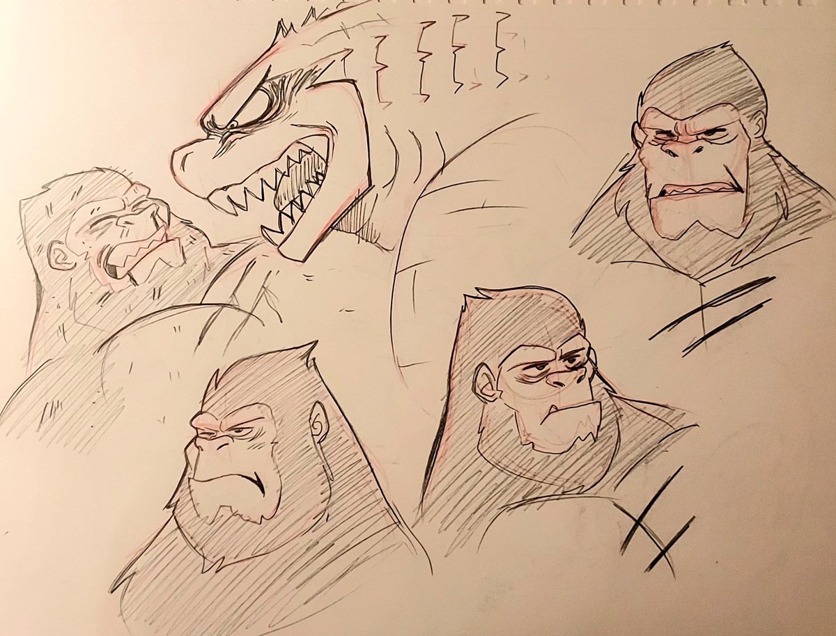 Some King Kong sketches I made recently. It was my first time drawing him, and I'm pretty happy with how they turned out. #KingKong #GodzillaxKong #Monsterverse #sketches #pencils