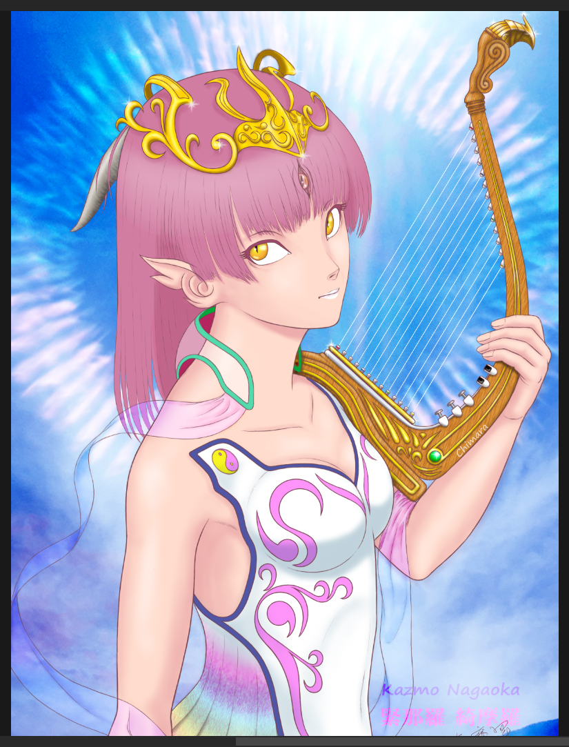 緊那羅 綺摩羅 が完成しました。 かなりサイズを抑えた切り取りになります。 全体表示されるサイズはpixiv、deviantart、artstation等のサイトにおいてあります。 #illustration #Kinnara #originalcharacter #イラスト