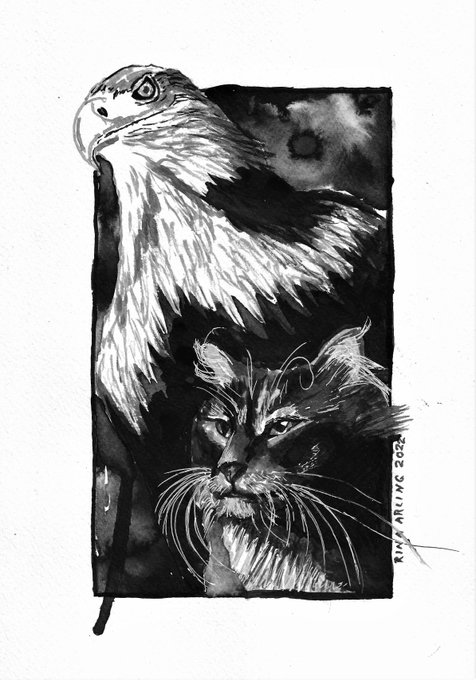 #Inktober2022, Day 11. Eagle. rinaarling.com facebook.com/Rina Arling Art (story in FB) instagram.com/rinaarlingart/ twitter.com/RinaArlingArt #inktober #eagle #drawing #painting #ink #rinaarling #art #artist #cat #maleri #piirros #maalaus #muste #blekk #tegne #kissa