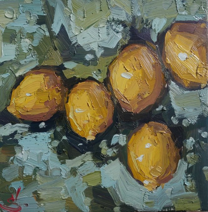 Lemon Tree 🌿🍋 12 X 12 Inches Oil on Stretched Canvas Available at auction from today #lemons #artwork #ArtistOnTwitter #SaturdayMorning #impressionism #art #lemonart #ukartists #homedecor #interiors #interiordesign #kitchendecor #oilpainting #impasto