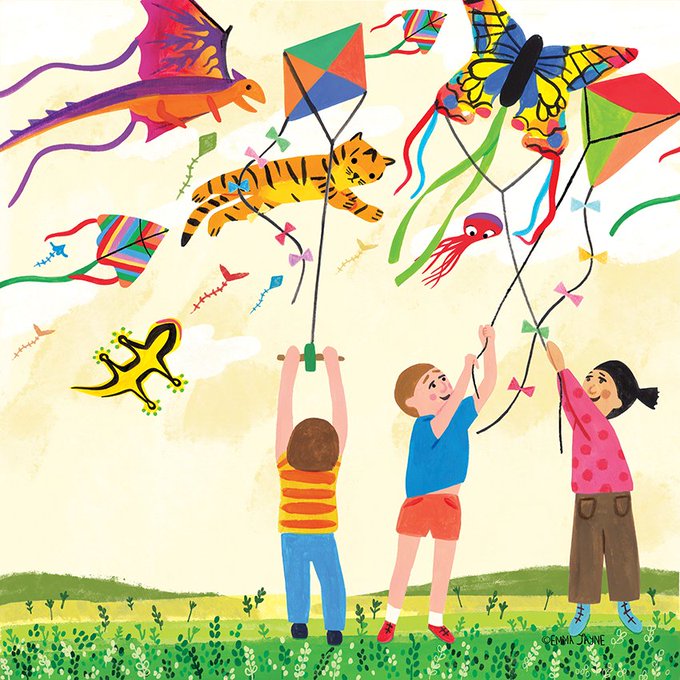 Kite flying on a sunny, yet windy afternoon #kite #artillustration #Illustrator #kidlitartist #nostalgia #kidlitart