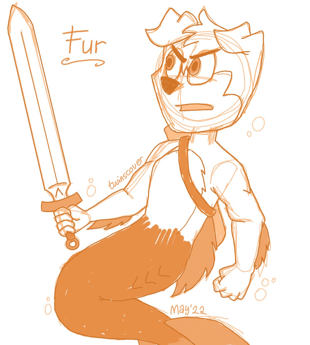 Mermay 2022 day 16 - Fur I pick Archie since he's dog. i made him as mermaid because it's fun and he looks like a mermaid warrior with his sword. #kitkatsmermay #mermay #mermay2022