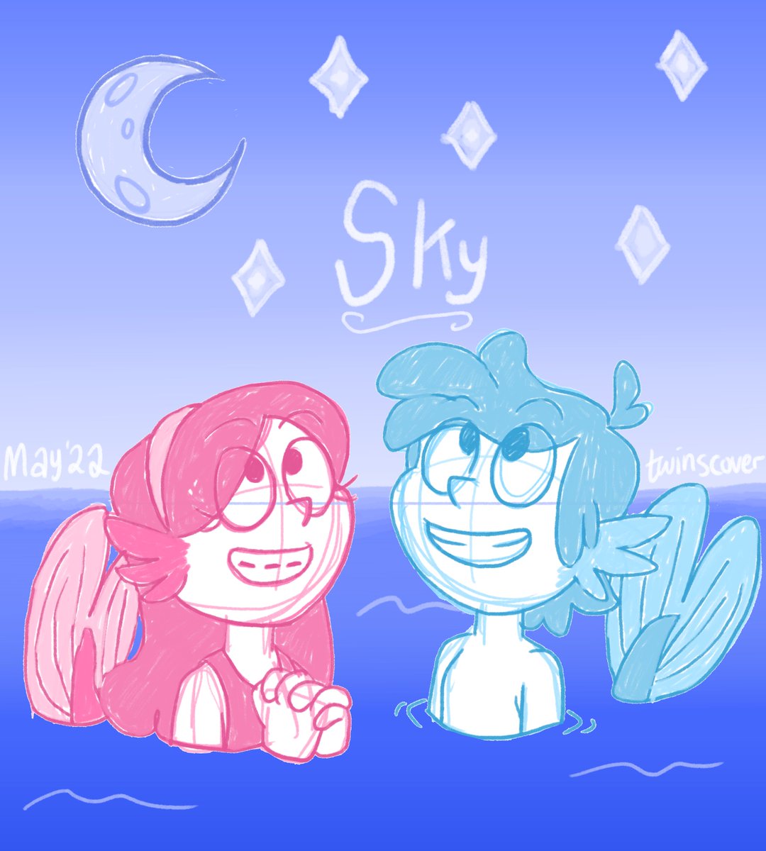Mermay 2022 day 10, Sky It supposed to be simple, but i over due to background. Anyway, just draw mystery twins as mermaid is fun things to me. #kitkatsmermay . #mermay #mermay2022 #GravityFalls