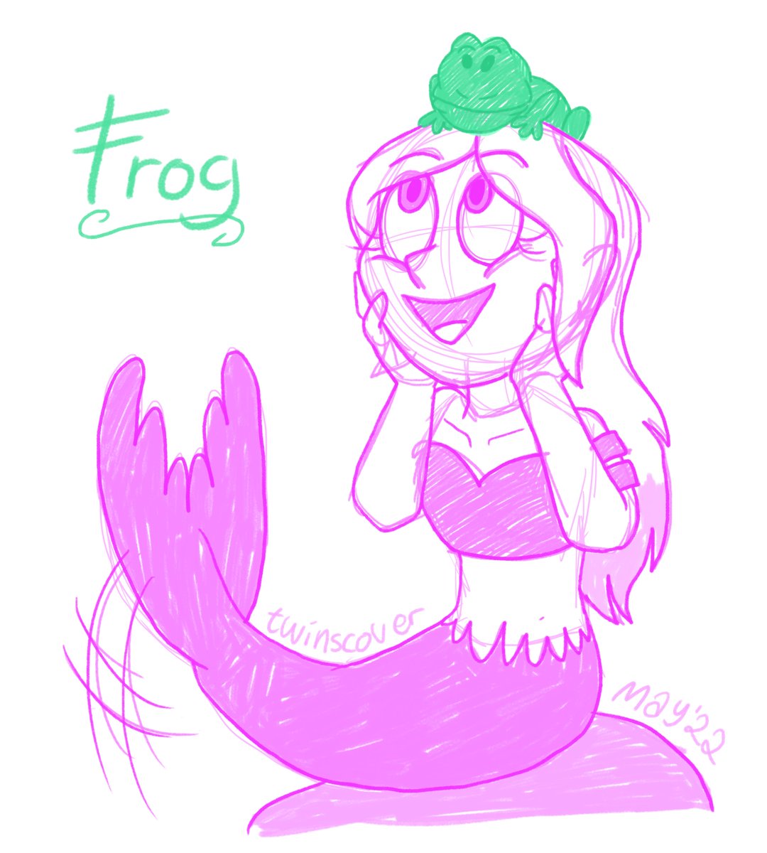 Mermay 2022 day 11, Frog Flynna with frogs on her head. I really love selkie!flynna. #kitkatsmermay #mermay #mermay2022