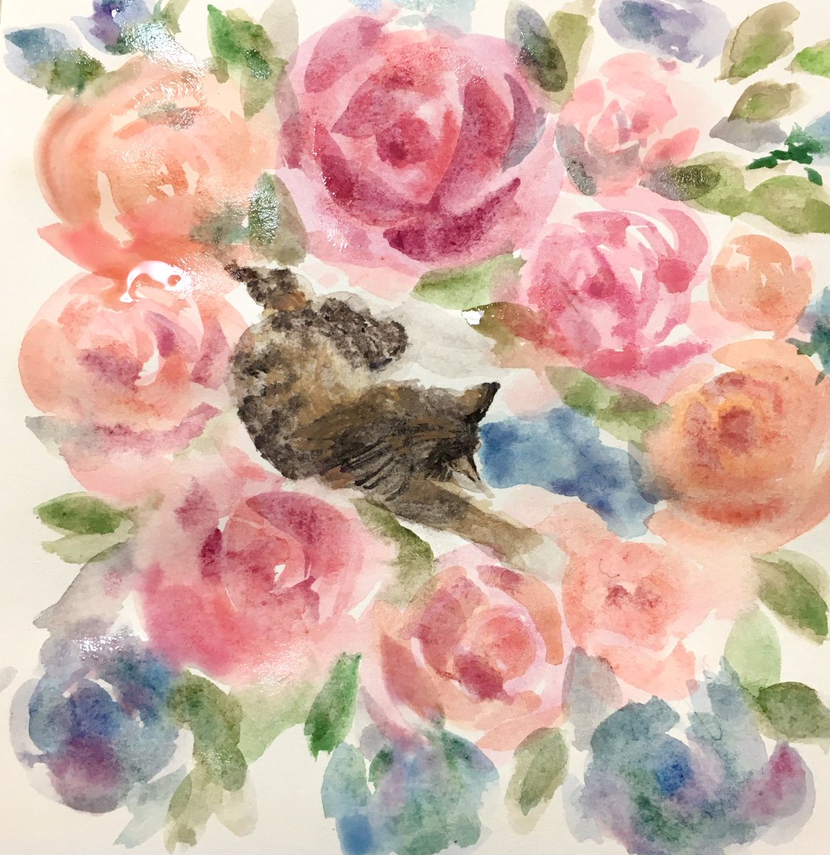 生後1年の後ろ姿と生後間もない頃の後ろ姿 #watercolor #watercolorpainting #kittycat #cat #水彩 #수채화일러스트 #生後0か月 #後ろ姿が好き