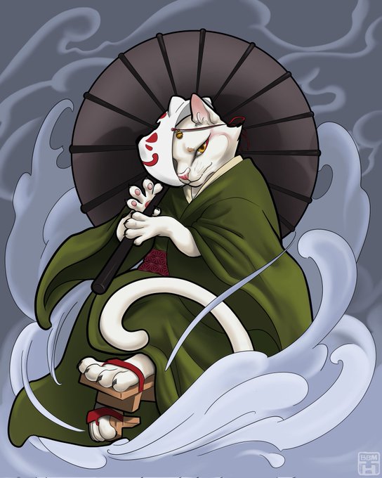 Do you find it hard to name your art? I do, need a hand with this one. 😅 #art #illustrationart #artoftwitter #illustration #drawing #CatsOfTwitter #umbrella #kitty #kittycat #artstation #cat #oriental #print #tattooart