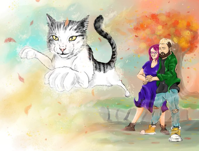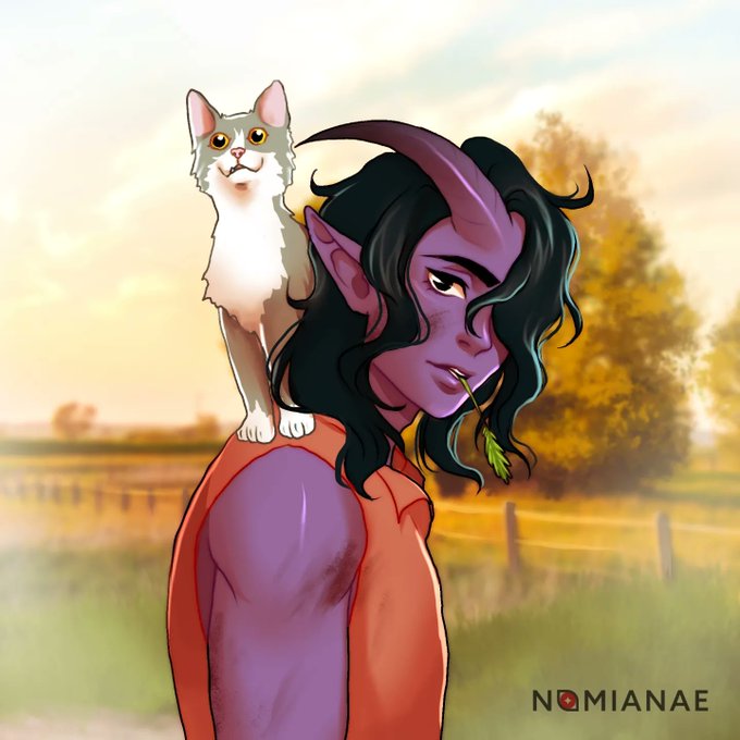 Smoky as a teen with his kitty, Knight. The little kitten appeared on his farm just when he needed most. 🐈 #dndart #dungeonsanddragons #digitalart #kittycat #dndcharacterart #DnDcharacter