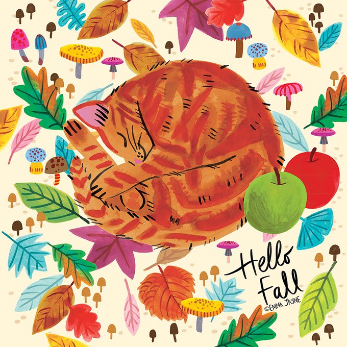Cats will sleep anywhere where it feels cosy! My kitty Willow, hasn't experienced being out in autumn before (she is just over one year old) so she'll be in for a treat when she sees a heap of leaves on the ground to snuggle into! 🐱🍂 #kittycat #autumnleaves #illustration #Cat