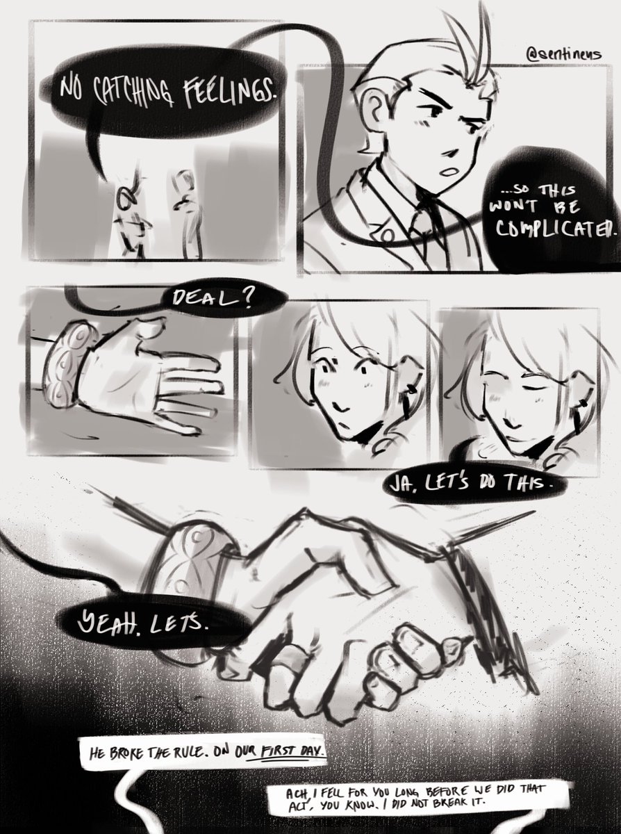 day 4: fake dating AU — tfw your courtroom rival asks your help for a pr stunt but you end up realizing you're in love with him (and that the feeling might be mutual) #klapolloweek2022