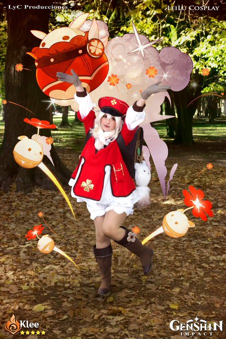Ta-daa~~ Klee's here 🐰 I can finally show you some pics from the streetwear genshin shoot ✨️ I enjoyed making this costume a lot, especially the plushie 🥺 . . . 📸| @Por_no_foto #Klee #genshinimpactcosplay #streetwearklee #kleecosplay #handmadecodplay #costumeartist #sewing