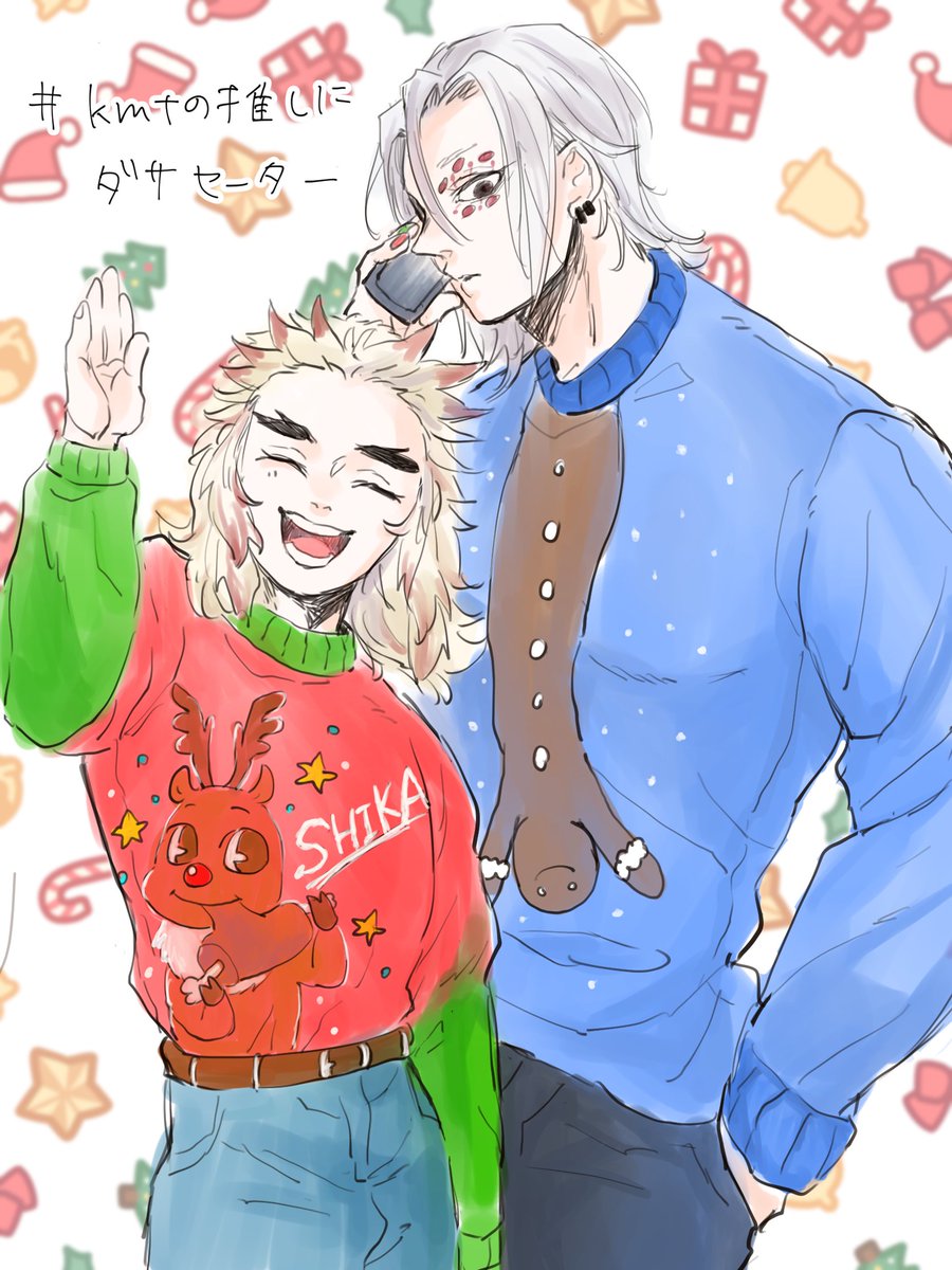 #kmtの推しにダサセーター 🏷参加させてください🙇♀️ うちにダサ上が居たので過去絵リ*メ*イ*クで……🍶 あんまりセー*ターっぽくも無いんだけども🙈💦 ※背景は素材です twitter.com/cirol108/statu…