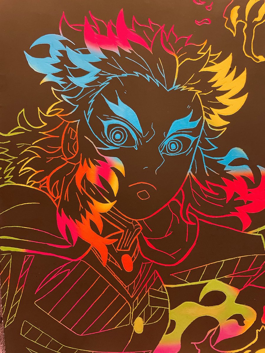 No.42 おはようございます☀️ 今日も笑顔で楽しく過ごしましょ ٩(ˊᗜˋ*)وわっしょい🔥🔥🔥 #鬼滅の刃 #kmt #kmtスクラッチ #スクラッチアート #鬼滅の刃ファンアート #鬼滅の刃好きと繋がりたい