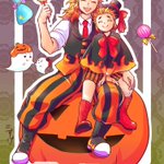 ちょっと早いけど… ✨🎃 トリックオアトリート🎃✨ お菓子くれなきゃイタズラするぞ!🔥👻 ちび寿郎と千くんかぼちゃになりました✨❤🎃 もっと欲しいそうなのでお菓子あげるの喜びます😊 素敵なタグお借りしました! いつもながら服は妹です! 👻とか🎃の小物は私😂 #kmtハロウィンパーティー