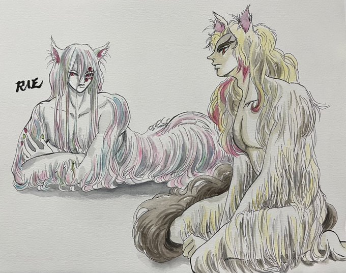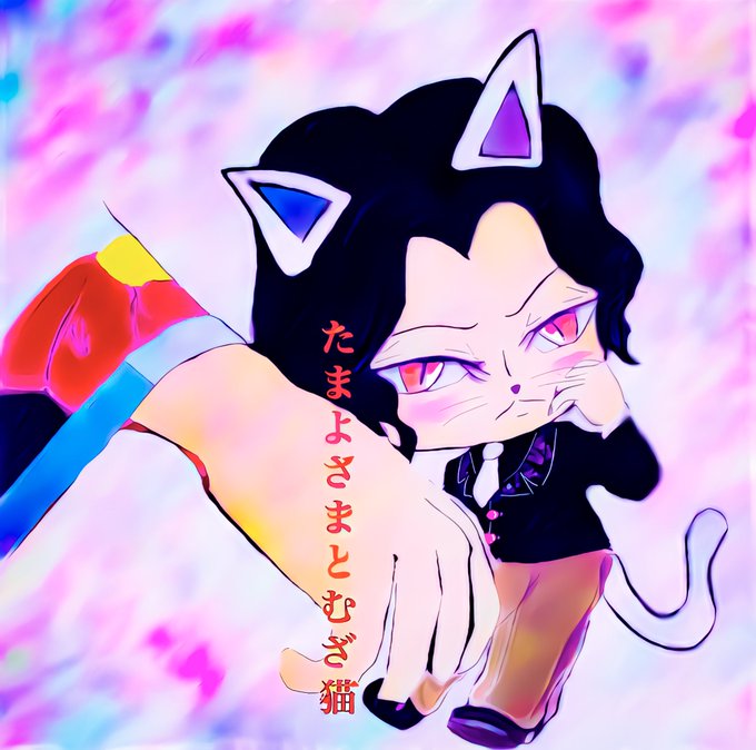#kmt推しを獣化してみた2nd 素敵な🏷お借りします🙏 以前💎さんのネコ化を描いた時に🔥さんも描きたくなって早や半年経過、素敵🏷のおかげでやっとやっと2匹で描けました😂 🐈⬛ペルシャ猫です 頂いた最高級水彩紙に描いてみたんだけど活かせてない😅