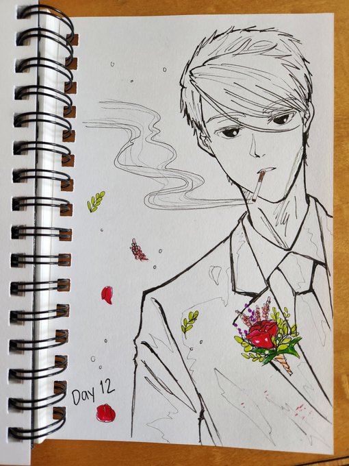 Day 12: Angsty and indifferent pre-Ichika days #Ryoamakusa #Koikimo #koitoyobuniwakimochiwarui He looks like a groom here 😅, but he's probably just forced to attend a colleague's wedding #inktober #inktober2022 #inktober2022day12 #traditionalart #sketch #drawing
