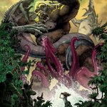 Skullcrawler-Chan, The Goddess of Gluttony Redesign, her future hubby is next to redesign! 🦖🦎🐍💚 #Art #artistsontwitter #artwork #OcArt #KaijuAsHumans #Skullcrawler #Kong
