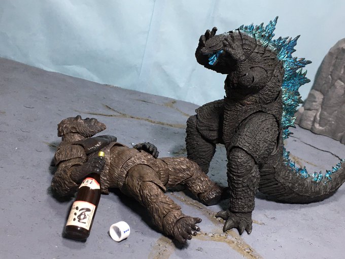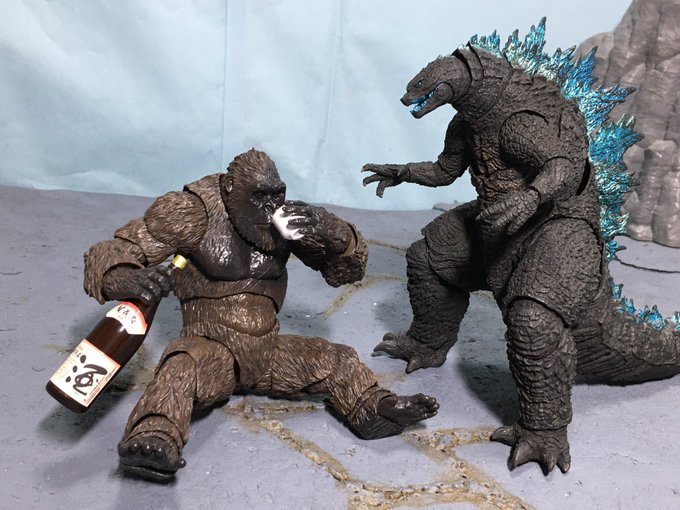 #夜のフィギュア撮影会 お題『酒』過去作 呑みすぎたコングを心配するゴジラ!?😄🍶 #ゴジラVSコング #GodzillaVsKong #ゴジラ #Godzilla #コング #Kong #モンスターアーツ #モンスターアーツ写真部 #酒井ゆうじ 氏 #SHINZEN 氏 #SHMonsterArts #オモ写