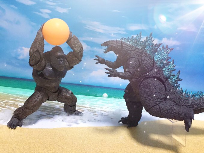 #おもちゃ撮影会 テーマ『夏』既出 浜辺で夏を満喫する二人!? #ゴジラVSコング #GodzillaVsKong #ゴジラ #Godzilla #コング #Kong #モンスターアーツ #モンスターアーツ写真部 #SHMonsterArts #オモ写