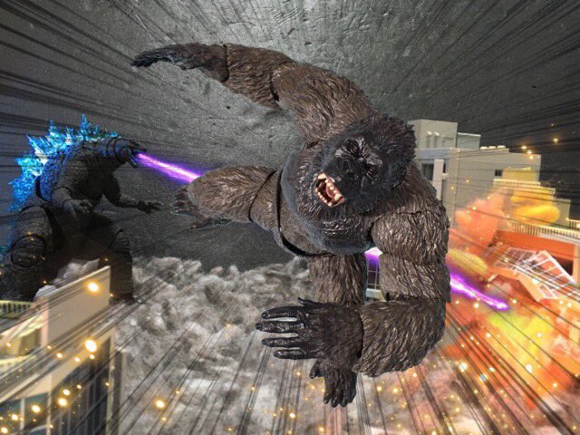 #夜のフィギュア撮影会 お題『躱す』過去作 間一髪でゴジラの熱線をかわすコング! #ゴジラVSコング #GodzillaVsKong #ゴジラ #Godzilla #コング #Kong #モンスターアーツ #モンスターアーツ写真部 #酒井ゆうじ 氏 #SHINZEN 氏 #SHMonsterArts #オモ写