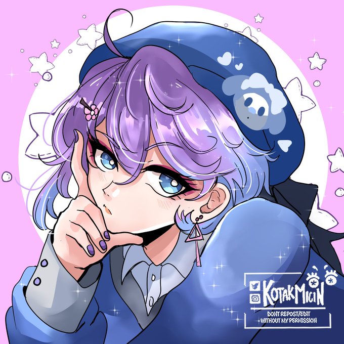 My part of blonde chan zine , honored to be able to duet with aria, @Naru_kunzo 's oc 🤧💙💙💙👍 Also the purple hair is my ocsona💜 #kotakmicin_oc #kotamicin_art #oc #ocbase