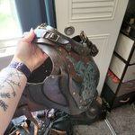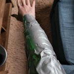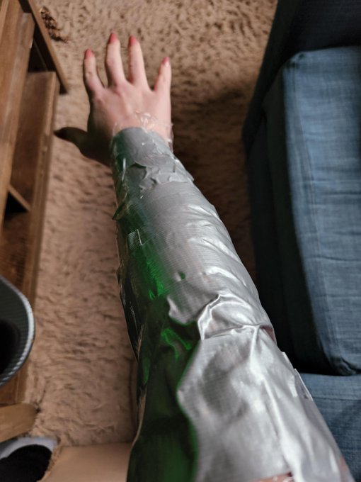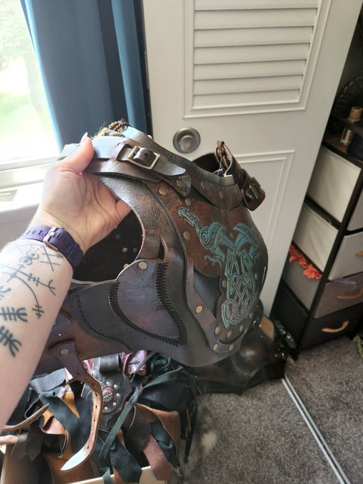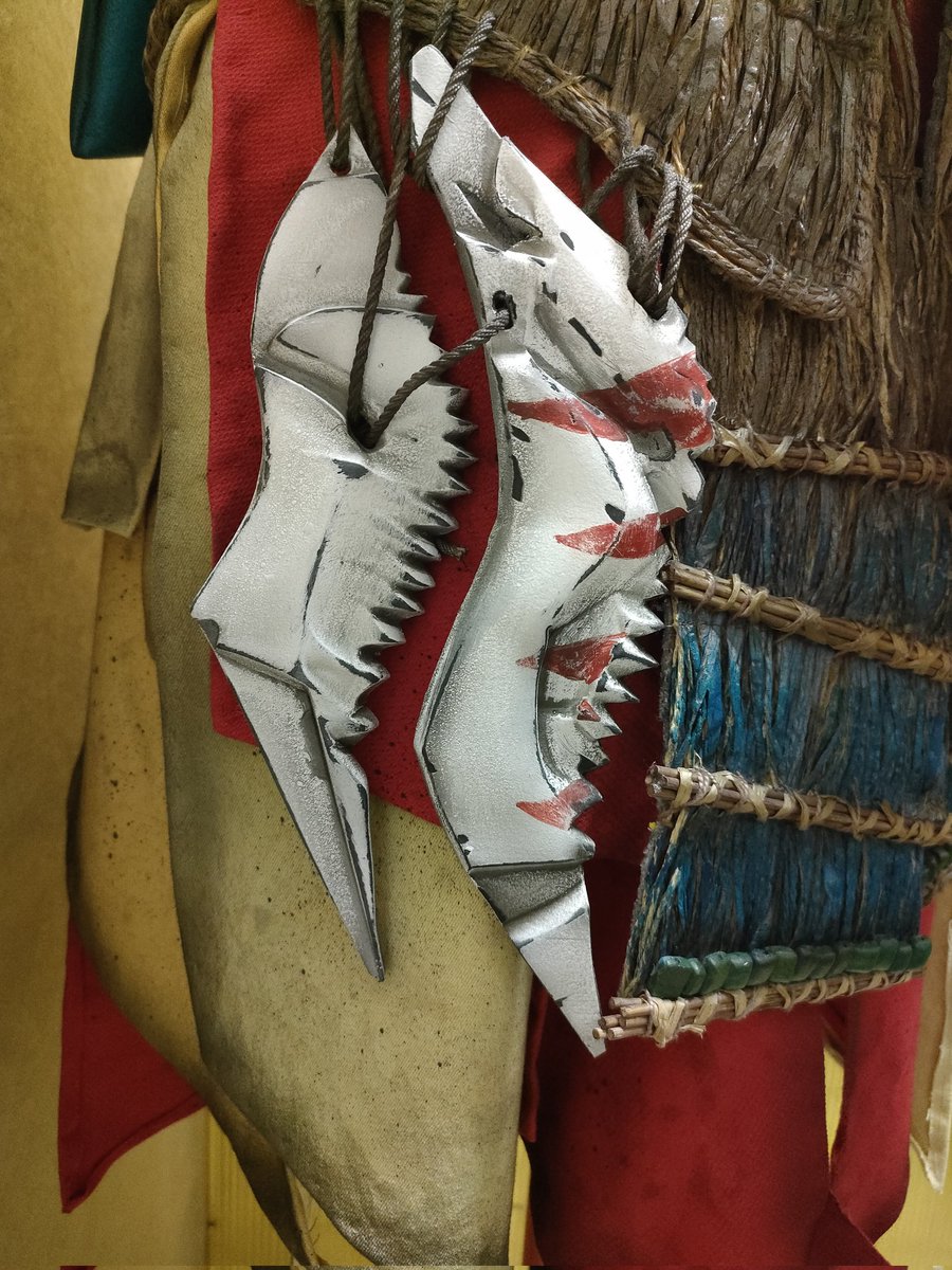 This doesn't look like much, but it's such an interesting bracer style, I wanted to get the shapes just right. It's like a taco shell, pinned together with a machine jawbone under the forearm. Never made a bracer like that lol #Kotallo #HorizonForbiddenWest #cosplay