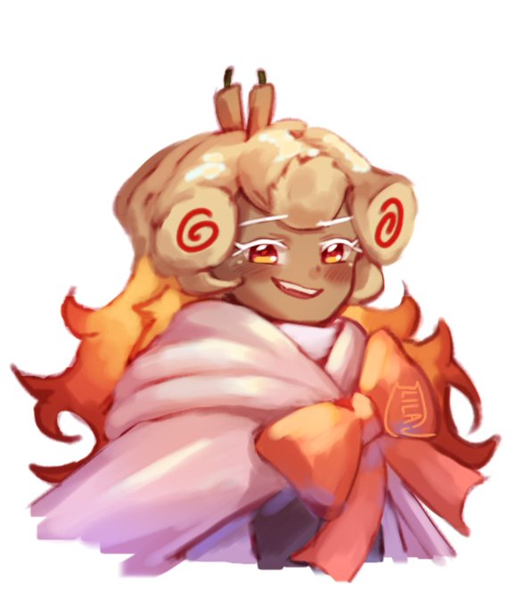 kouign-amann and capsaicin fanchild bc yes!! me and @CaramelArrow had an idea abt her and they made a design of her!! her name is dynamite (spring) roll and we like to call her "dyna" for short #cookierunkingdom #cookierunkingdomfanart #capsaicincookie #kouignamanncookie