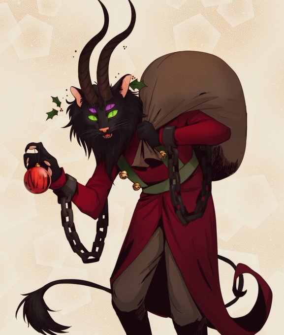 Tried to draw @NM_NickNocturne 's demon cat form as Krampus 'cause I thought that mix sounded very cool. #Krampus #digitalart