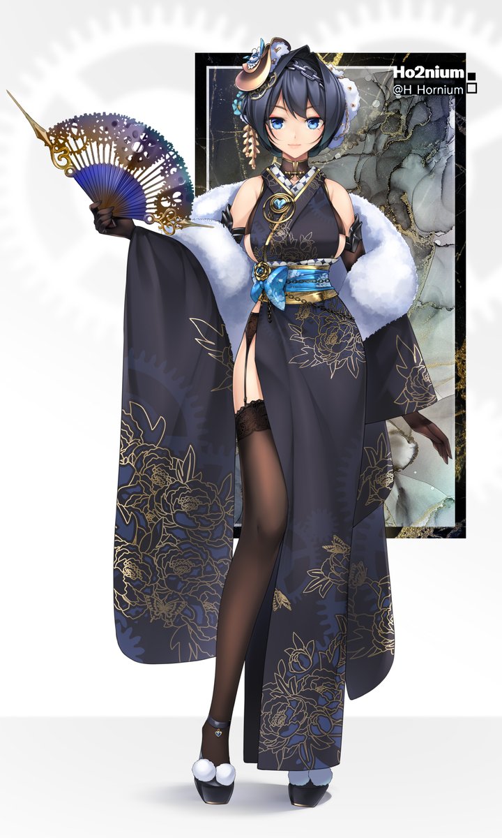 Kimono style isn't my forte, but I believe black and gold looks good on her #kromono #kronillust