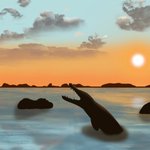 An injured eromangasaurus has attracted the attention of a large #kronosaurus lurking below. #dinosaur #marinereptile #ocean #squid #paleontology #paleoart #illustration #marinelife #prehistoric #Australia
