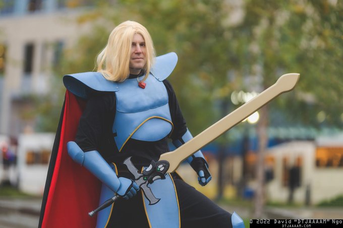 "I'm Chrom. This outfit seems to be from Múspell, the kingdom of flame." His lava arm made me realize how outdated my Falchion lighting system is, perhaps I should remake this sword for the 5th time... 🤔 Photo by @AtelierRadius #FireEmblem #cosplay #kumoricon2022