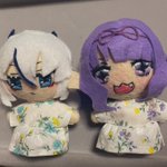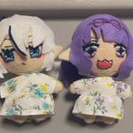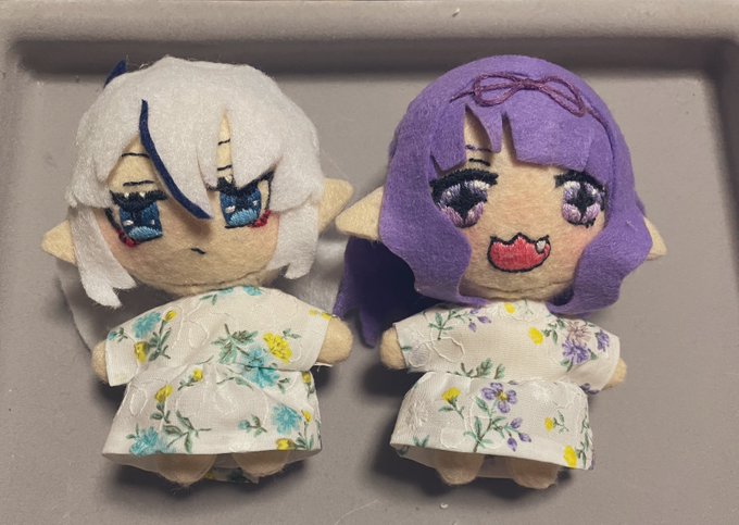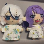 遂に、らんちゃんとルピちゃんの10センチぬいちゃん完成したーッ!お洋服簡易でお揃いのワンピにしたけど春らしくてピッタリだったかも、お衣装も作りたい…! 絵じゃないけどファンアートではあるからタグ使わせてもらいます🙏 #kuonran_art #ルピart