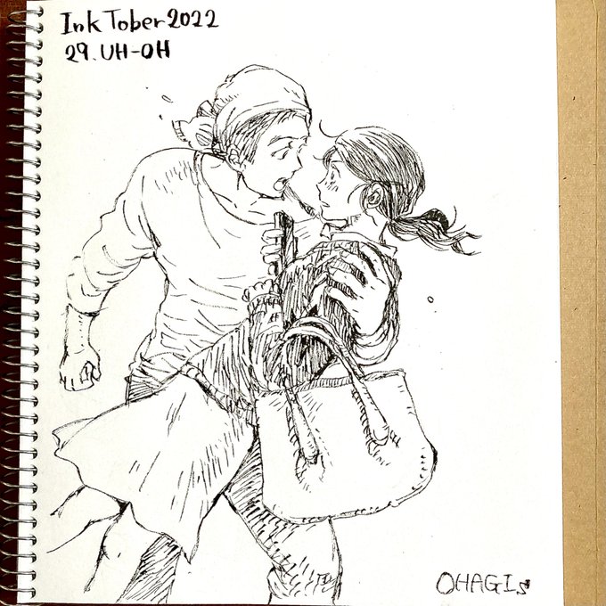 インクトーバー29番目のお題は「UH-OH/おっと」 ZIG Cartoonist Mangaka FLEXIBLE Fineと顏彩耽美Graphite Colorsで描きました。 #inktober #inktober2022 #kuretake_inktober #kuretake_inktober2022 #kuretake_inktober2022_giveaway #Inktober_PerfectChallenge