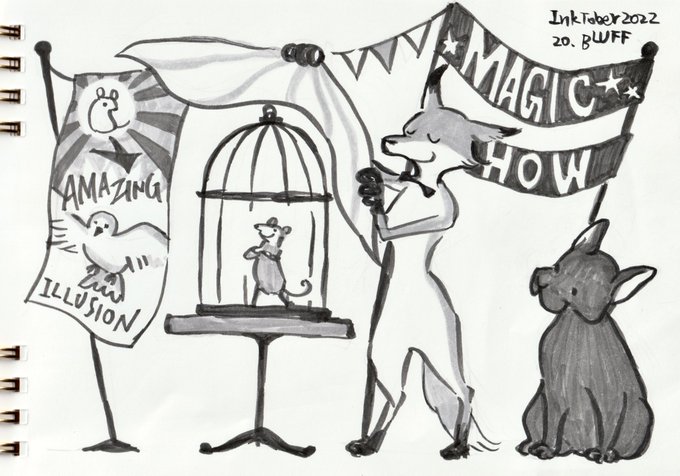 🦊くんの特技 イリュージョンもできるんだって…? 20.BLUFF Please pay attention…! #inktober #inktober2022 #kuretake_inktober #kuretake_inktober2022 #illustration #illust
