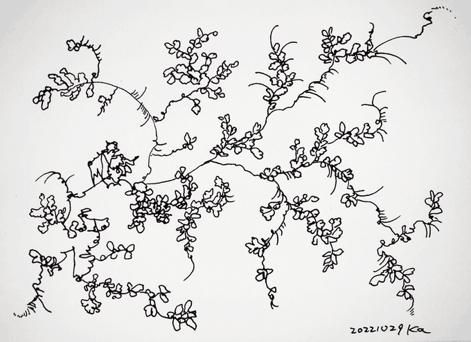 29日目 困ったときの適当ドローイング。 手に任せると、植物っぽくなりがち。 使用画材 ・呉竹絵てがみ墨滴 ・ガラスペン #inktober #inktober2022 #inktober2022day29 #kuretake_inktober #kuretake_inktober2022 #kuretakeinktober2022_giveaway