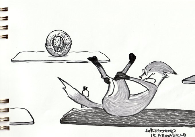 🦊👓ちゃんの日常。 先生、難しいです…! 15.ARMADILLO I can't do it like that…! #inktober #inktober2022 #kuretake_inktober #kuretake_inktober2022 #illustration #illust