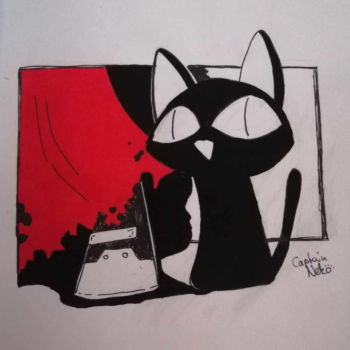 Happy #NationalBlackCatDay! "Always a sentry and always in love." #blackcat #Bagheera #drawing #KuroNeko #illustration #CatsOfTwitter #CatsOnTwitter #cat #blackcatday