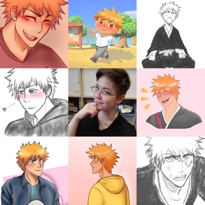 First time joining #artvsartist / #artvsartist2021 I took Kashi's advice and collected a couple of the Ichigo's I drew for Ichigo Day this year 🥰 #Bleach #KurosakiIchigo