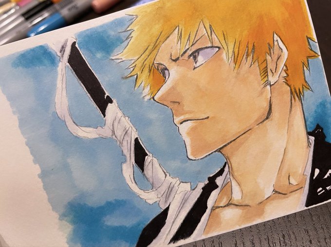 描ける時に描き溜めするワタシですが 基本見る専なワタシですが、 沢山の作品見たいので気軽にフォロー してください👀💡 #BLEACH #黒崎一護 #kurosakiichigo #模写 #コピック #イラスト好きな人と繋がりたい
