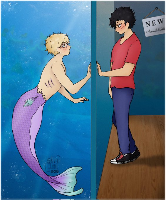 Mermaid Tsukki trapped and forced to live in an aquarium, seeing for the first time a human who isn't really all that scary 💖 ----- #krtsk #kurotsuki #kurotsukki #クロ月 #mermay #mermay2022