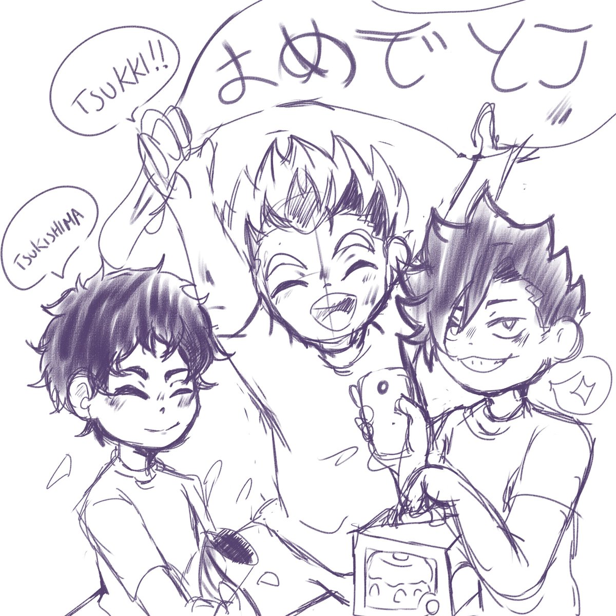 espero poder terminar una ilustración que hice por el cumpleaños del rubio pechocho, y si no, al menos pude hacer estos pequeños sketch, espero les guste ;^; #月島蛍誕生祭2022 #krtsk #Haikyuu #kurotsukki