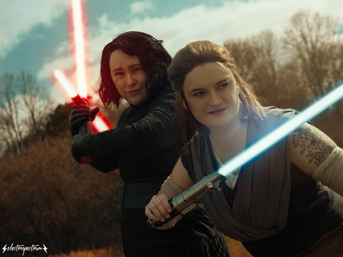 “I feel it again. The pull to the light.” 🌌⚔️🔴 📸 @electr0spectrum Rey @ChattyAnny #starwars #kyloren #cosplay #starwarscosplay #rey #reyskywalker #bensolo