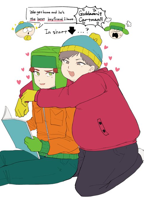 Day 4 of #kymanweek2023 First Date.💞 I wanted to tell a story with this one! Get yourself someone who looks at you like my partner when I’m giving a speech about why Kyman works so well (see Cartman here). #kyman #kymanweek #SouthPark #boylove #bl #fanart #spkyman #southparkart