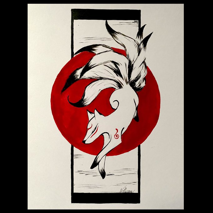Nollitober J27 Le thème du jour: Renard Si vous me suivez dans cette aventure, n'hésitez pas à utiliser le @nollitober pour me notifier. #nolly #inktober2022 #ink #chinaink #blackandred #challenge #october #fyp #nollitober #kyubi #sun #fox #kakejiku