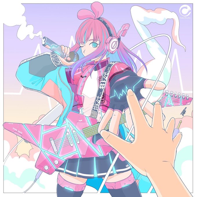 『Play with me🎶』 キズナアイさんです! はじめ描きました! そして勝手にギターデザインしました! #絵描きさんと繋がりたい #kzn #キズナアイ #kzn_illustAmbassador #KEIVIコンテスト